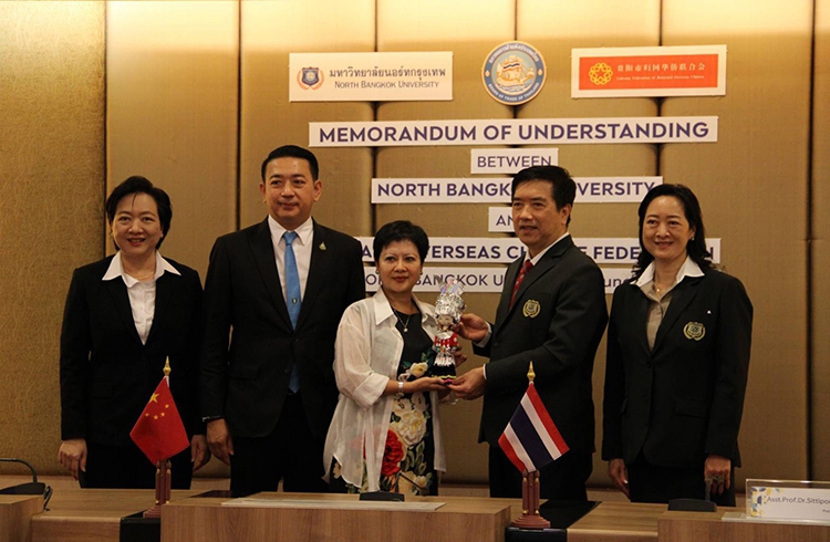 校長Sitthiporn Prawatrungruang助理教授博士、高級副校長助理教授Pattama Rupsuwankul博士熱情接待了貴陽市僑聯副會長陸紅女士; 泰國貿易委員會和泰國貿易委員會出席北曼谷大學與中華人民共和國貴陽華僑聯合會教育合作簽約儀式,地點為巴吞蘭實校區朗實歷史圖書館大樓四樓Komes室 塔尼省。