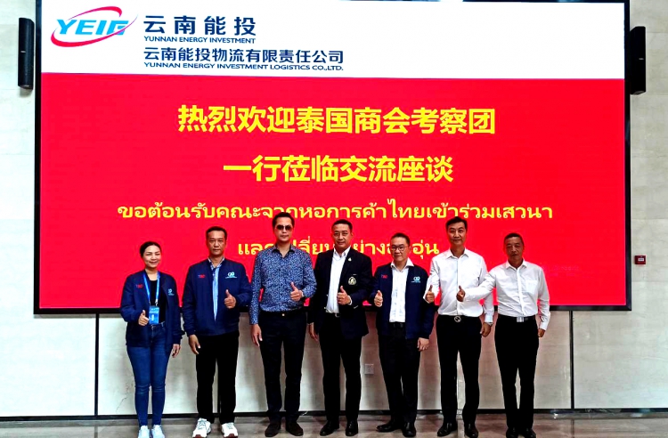 泰国商会和泰国贸易委员会华南边境及跨境贸易小组委员会主席Chaowchai Jiemvijid先生与Thanapat Pitithanavorakul先生、Chachai Leng-ee先生、Sithipoom Thanarittiporn博士组成的团队 Supis Laksanachoo女士出席云南能投物流有限公司会谈