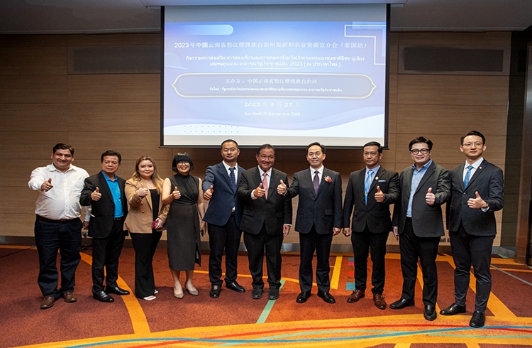Chatchai Leng-ee,泰国商会 TSC 贸易代表 发表讲话 参加云南省怒江市农业旅游推介活动开幕式。