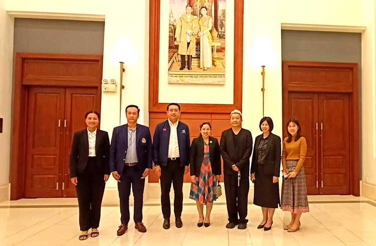 华南边境贸易与跨境贸易小组委员会主席Chaowchai Jiemvijid先生 泰国商会和泰国商会(TSC trade)与副会长 Chatchai Leng-ee 先生和董事 Supit Laksanachu 女士一起。